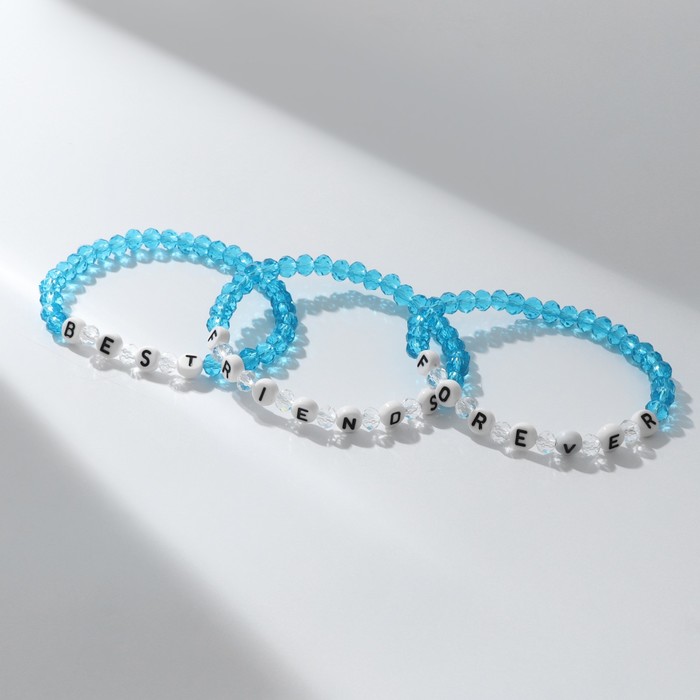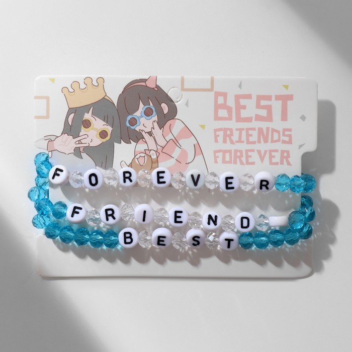 Браслеты парные «Неразлучники» бусины, 3 шт., best friends forever, бело-голубые, d=6 см — Характеристики