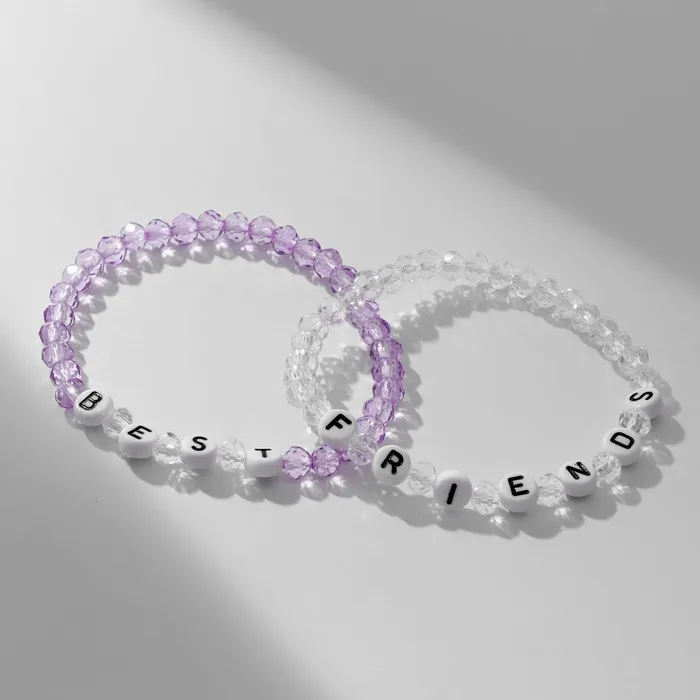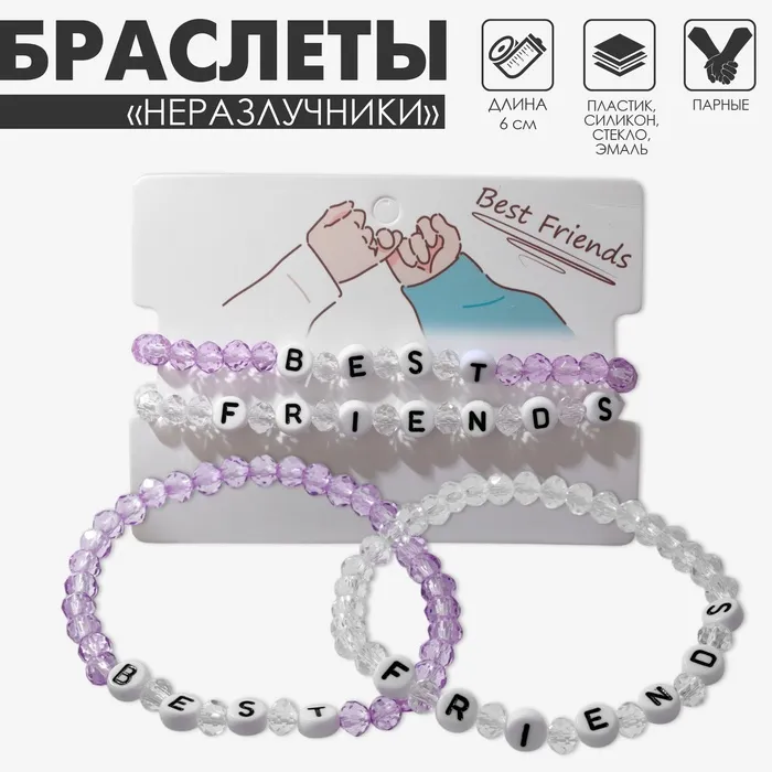 Браслеты парные «Неразлучники» бусины, best friends, бело-сиреневые, d=6 см — Характеристики