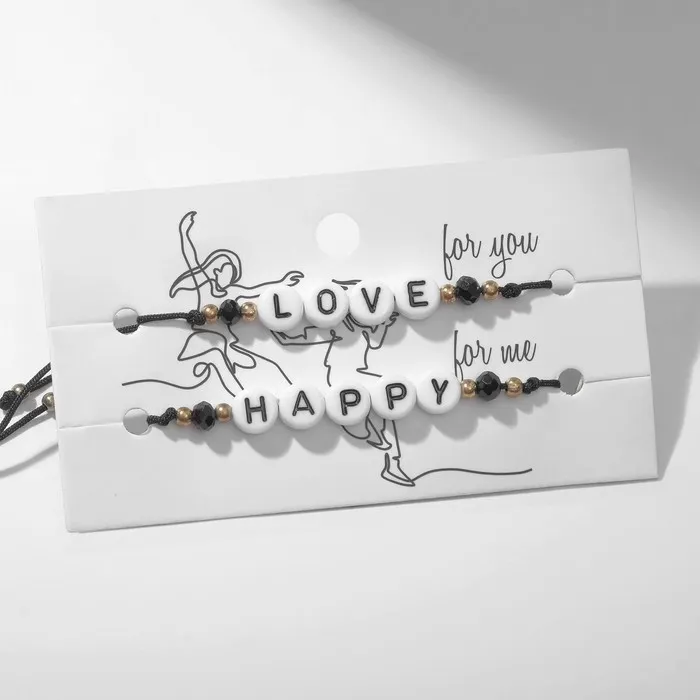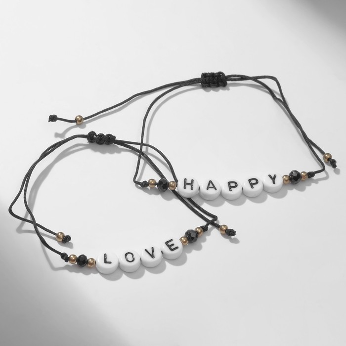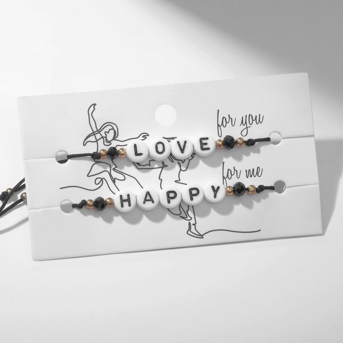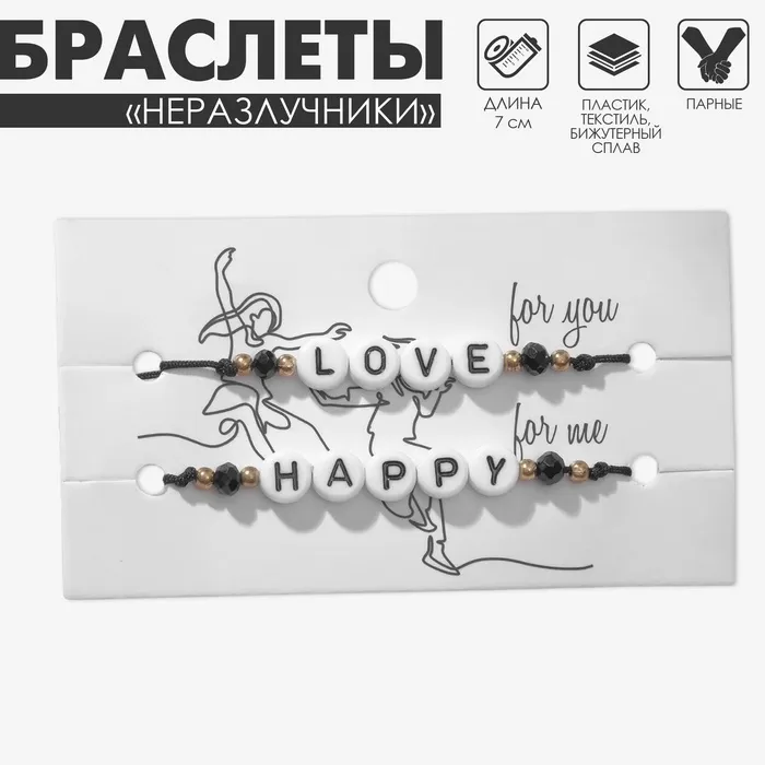 Браслеты парные «Неразлучники» бусины любовь и счастье, цвет чёрно-белый, 7 см — Характеристики