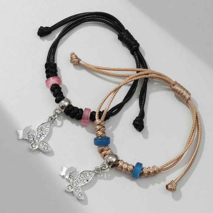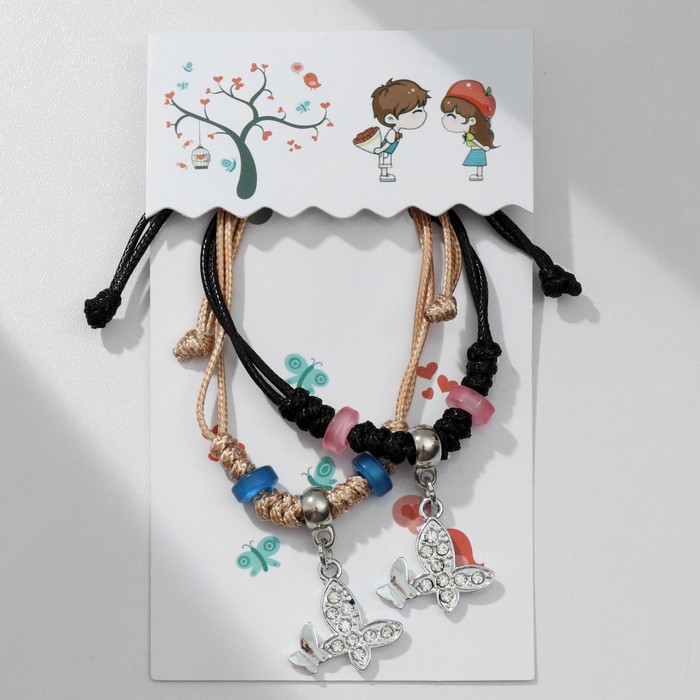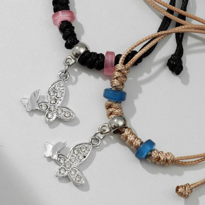 Браслеты парные «Неразлучники» две бабочки с бусинами, чёрно-бежевые, d=8 см — Характеристики