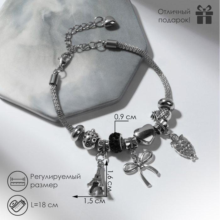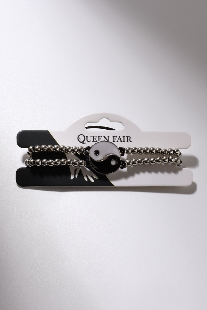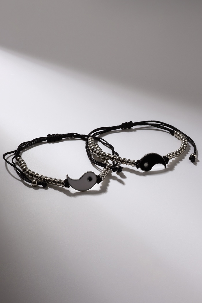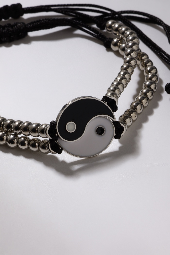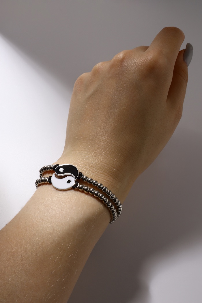 Браслеты парные «Неразлучники» инь-ян, на бусинах, чёрно-белые в серебре, d=7 см — Характеристики