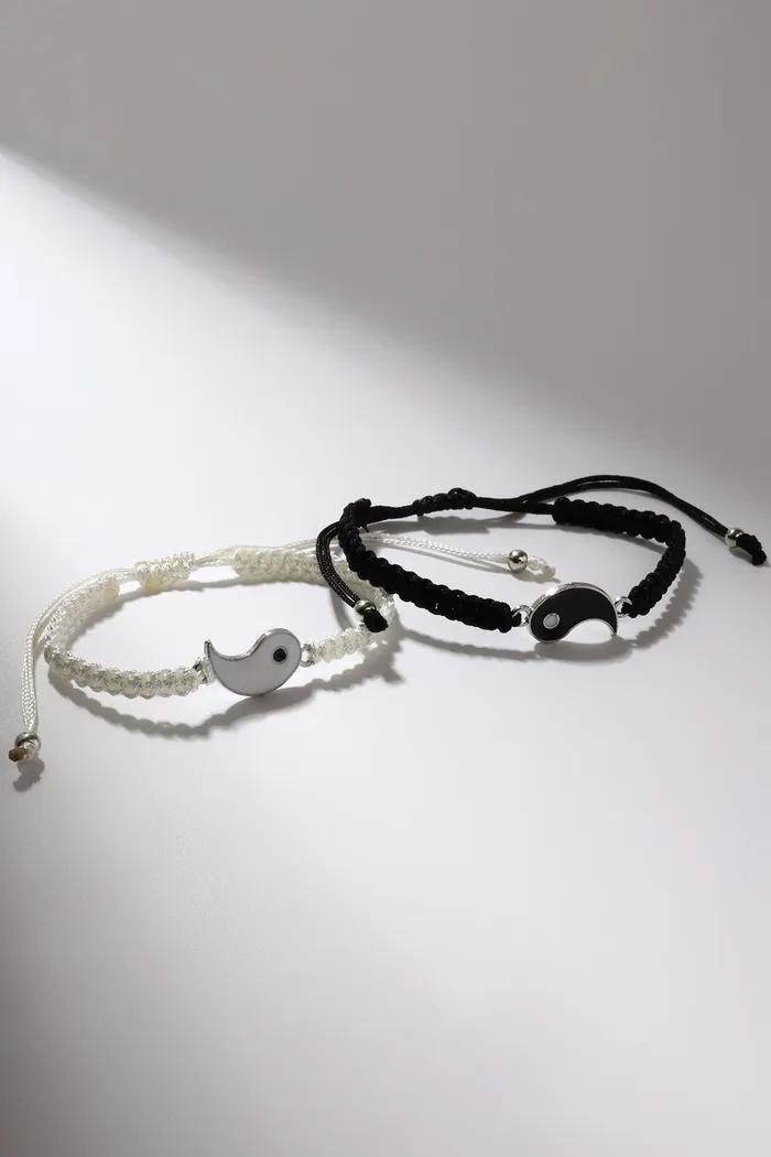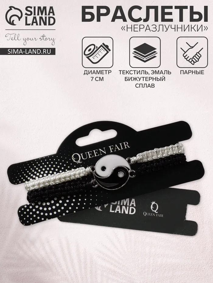 Браслеты парные «Неразлучники» инь-ян, толстая нить, чёрно-белые, d=7 см — Характеристики