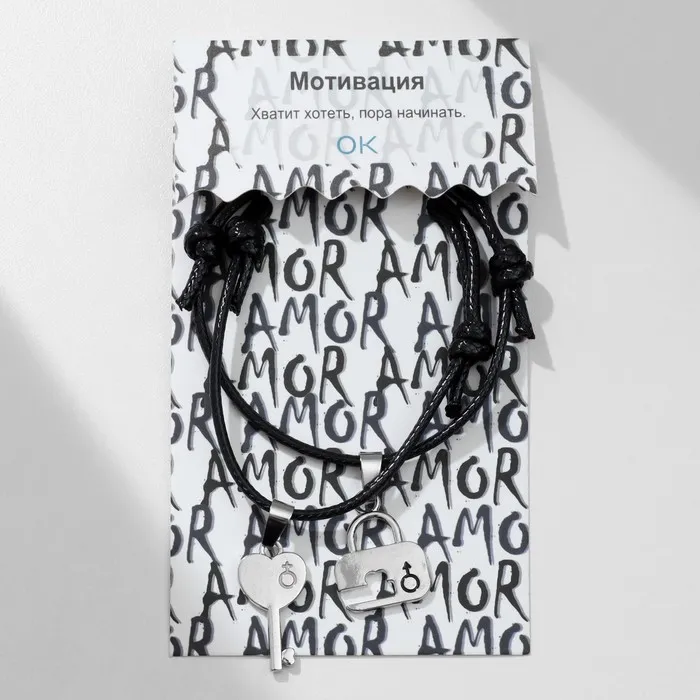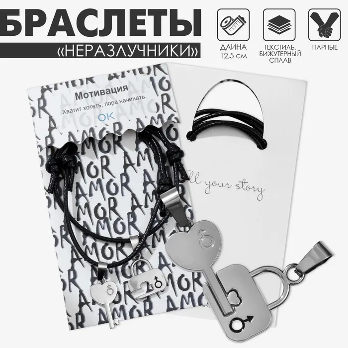 Браслеты парные «Неразлучники» ключик, цвет чёрный, L=12,5 см — Характеристики