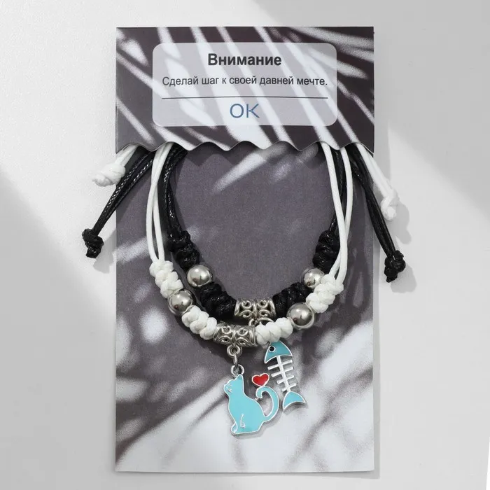 Парные браслеты "Неразлучники" на нити с подвеской — символ крепкой связи и преданности, который идеально подходит для двух любящих сердец. Выполненные с удобным замком-узлом, браслеты легко регулируются и подойдут на любое запястье, обеспечивая комфортное ношение каждый день. Изделие сопровождается стильной дизайнерской подложкой, которая придаёт комплекту особый шарм и делает его идеальным подарком.