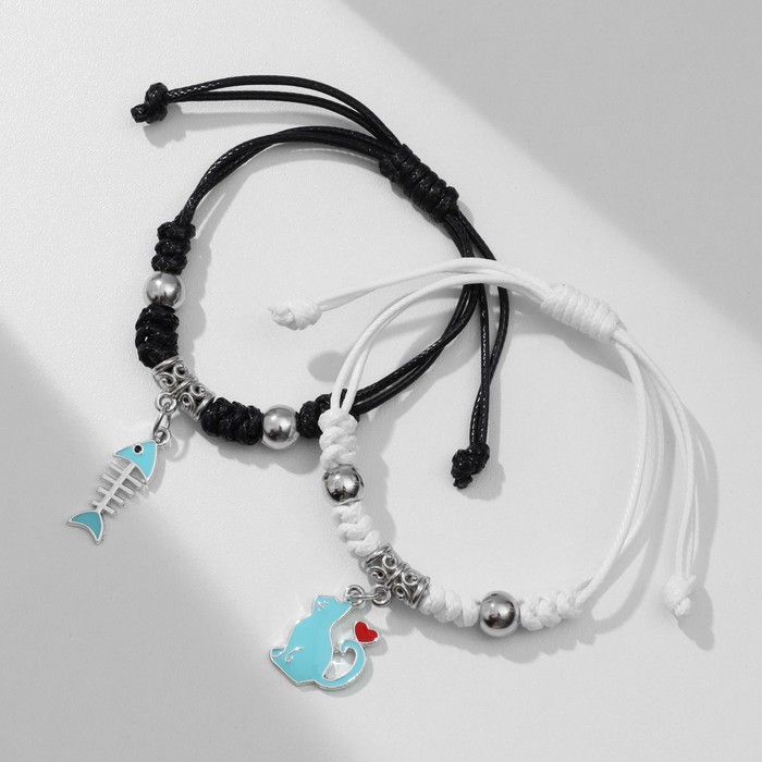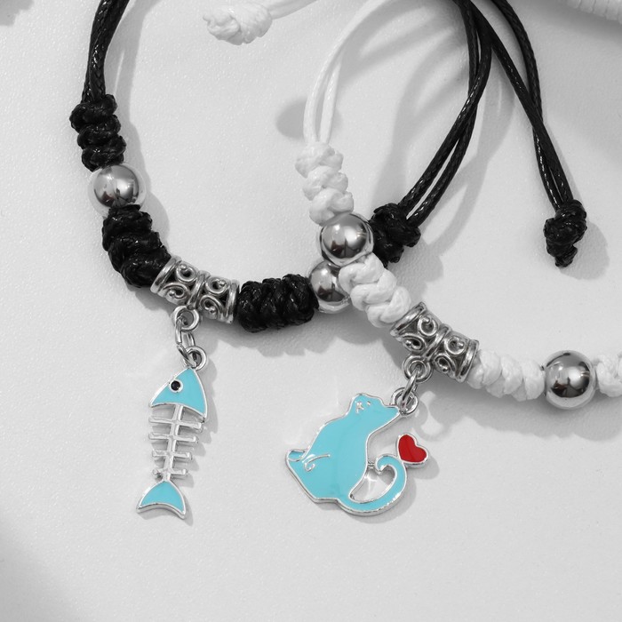 Браслеты парные «Неразлучники» кот с рыбкой, цветные, d=7 см
