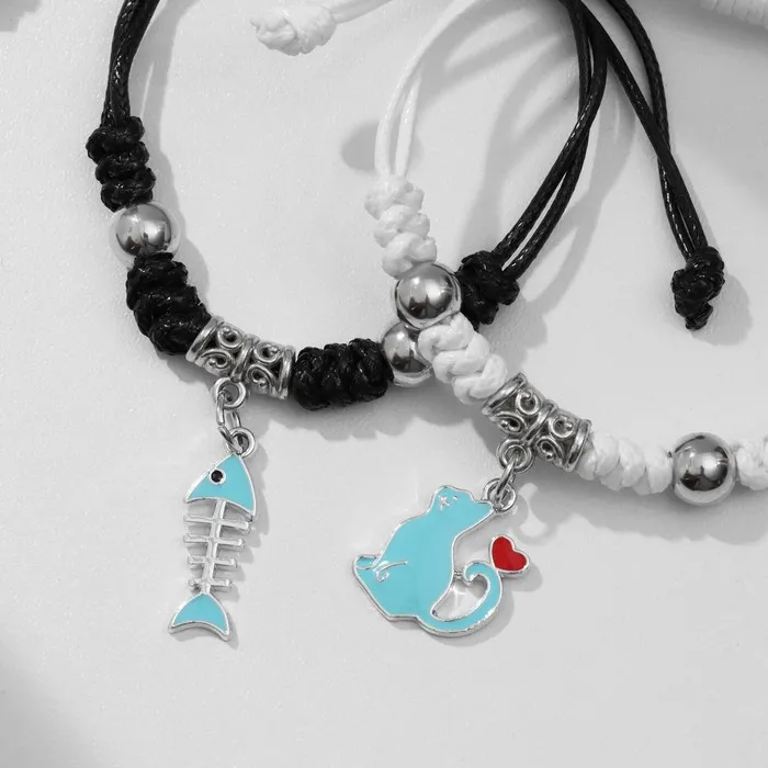 Браслеты парные «Неразлучники» кот с рыбкой, цветные, d=7 см — Характеристики