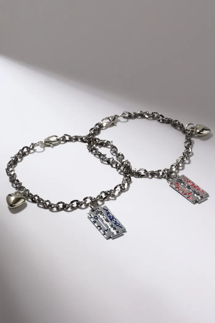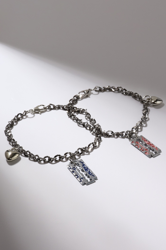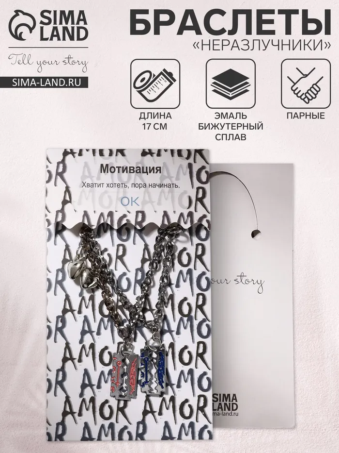 Парные браслеты "Неразлучники" из гипоаллергенного бижутерного сплава — стильный символ единства для двух сердец. Каждый браслет украшен элегантной подвеской и оснащён удобной застёжкой-карабином, которая обеспечивает надежность и комфорт при ношении. Идут в комплекте с дизайнерской подложкой, что добавляет изысканности и делает их идеальным подарком.