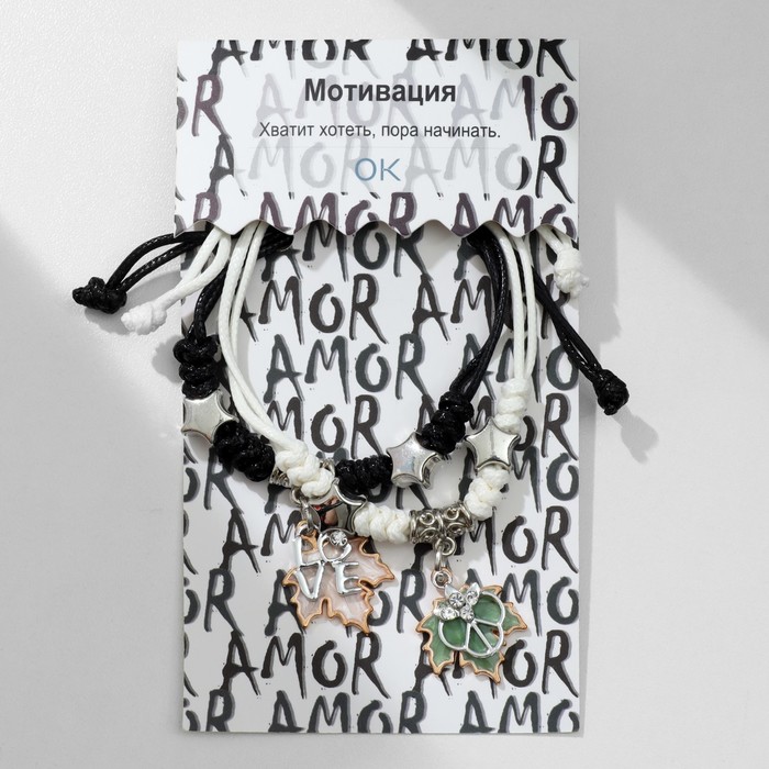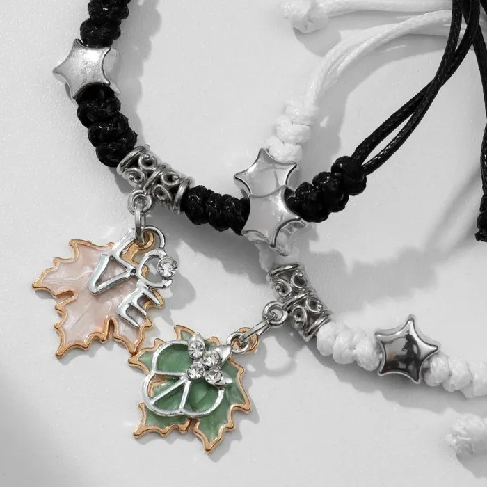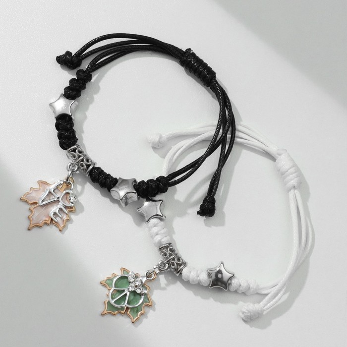 Браслеты парные «Неразлучники» листья, цветные, L=12.5 см
