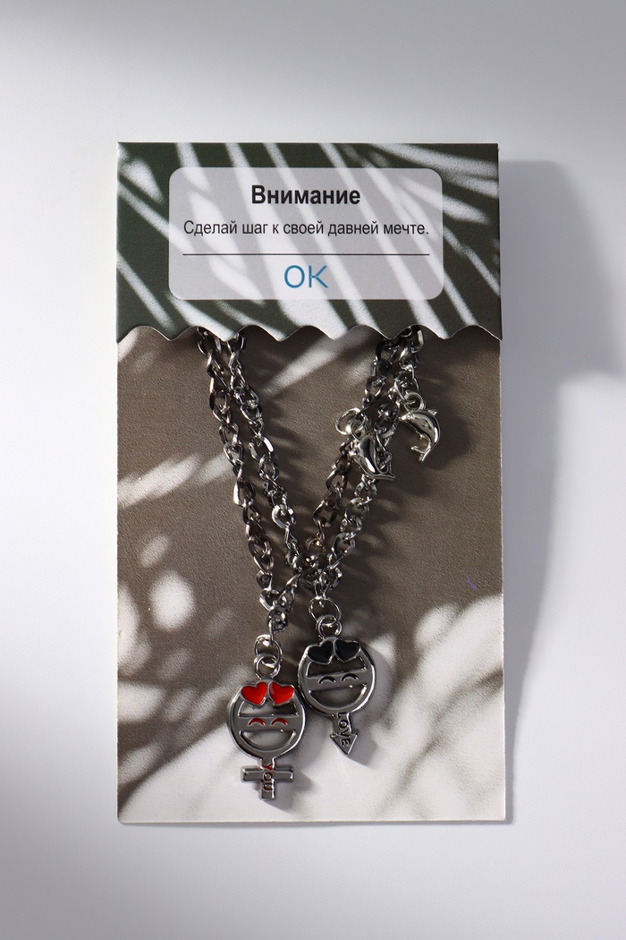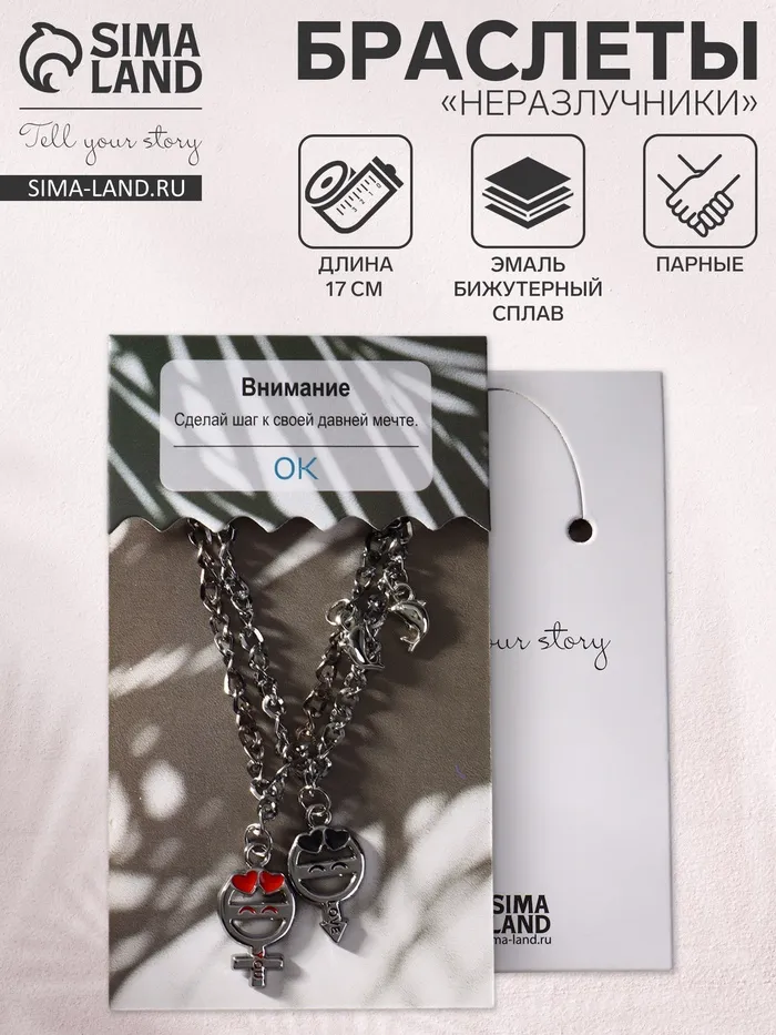 Парные браслеты "Неразлучники" — стильный символ единства для двух сердец. Каждый браслет украшен элегантной подвеской и оснащён удобным замком-карабином, который обеспечивает надежность и комфорт при ношении. Идут в комплекте с дизайнерской подложкой, что добавляет изысканности и делает их идеальным подарком.