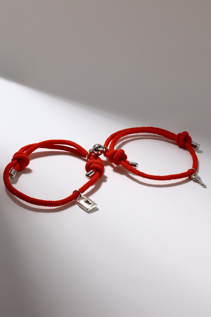 Браслеты парные «Неразлучники» на магнитах, замок с ключиком, красные, d=7 см — Характеристики