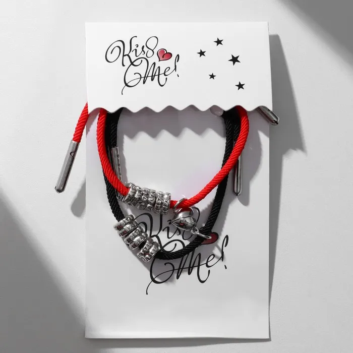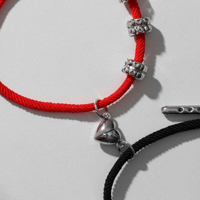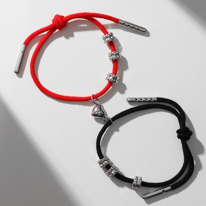 Браслеты парные «Неразлучники» на магните, двойная бусина с сердцем, чёрно-красные, d=8 см — Характеристики