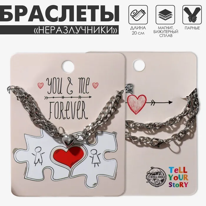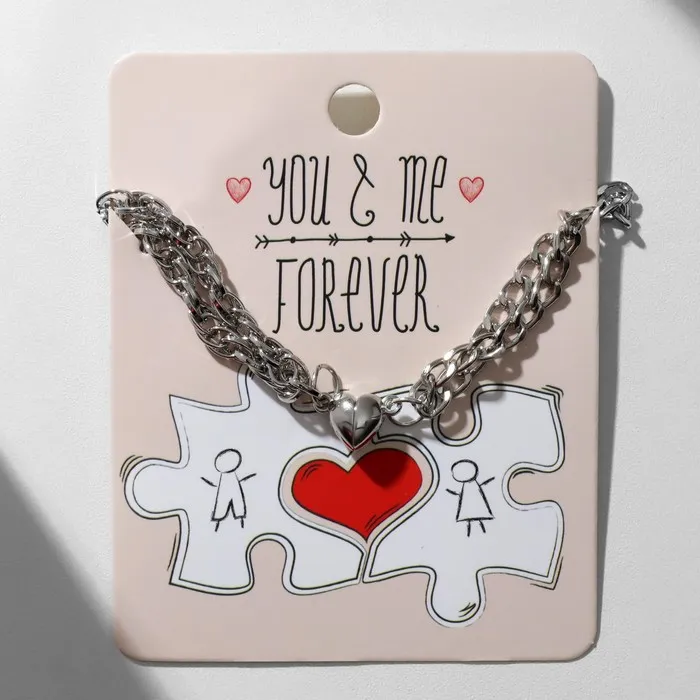 Браслеты парные «Неразлучники» на магните, сердечко, цвет серебро, 20 размер — Характеристики