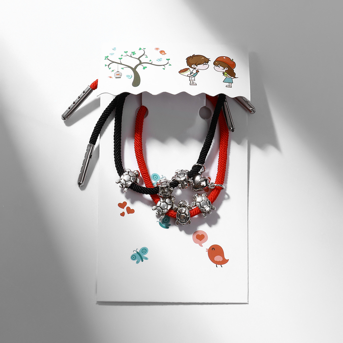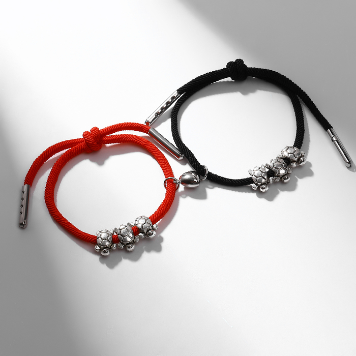 Браслеты парные «Неразлучники» на магните, три черепашки, цвет чёрно-красный, 8 см — Характеристики