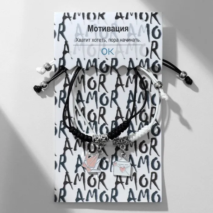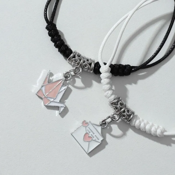 Парные браслеты "Неразлучники" на нити с подвеской — символ крепкой связи и преданности, который идеально подходит для двух любящих сердец. Выполненные с удобным замком-узлом, браслеты легко регулируются и подойдут на любое запястье, обеспечивая комфортное ношение каждый день. Изделие сопровождается стильной дизайнерской подложкой, которая придаёт комплекту особый шарм и делает его идеальным подарком.