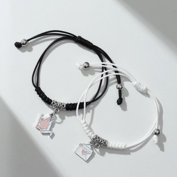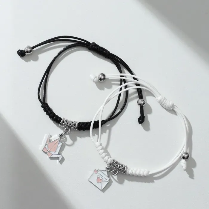 Браслеты парные «Неразлучники» оригами и письмо, чёрно-белые, d=7 см