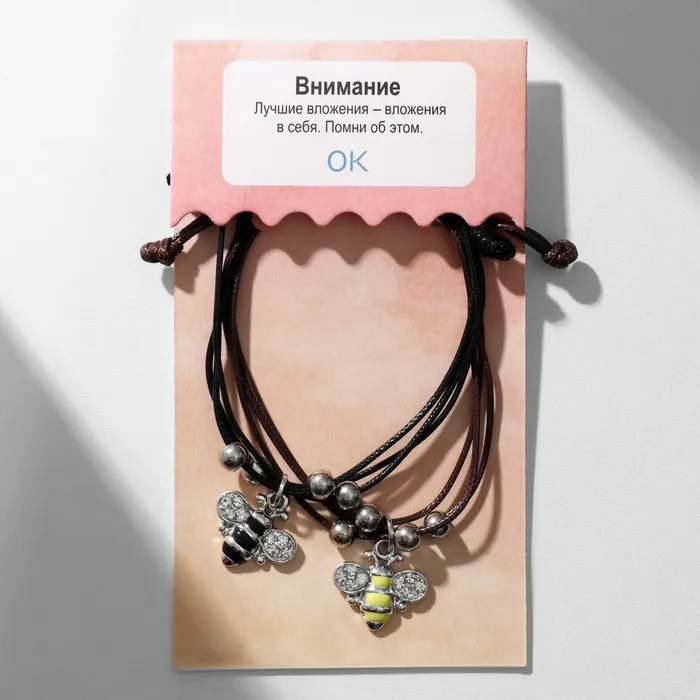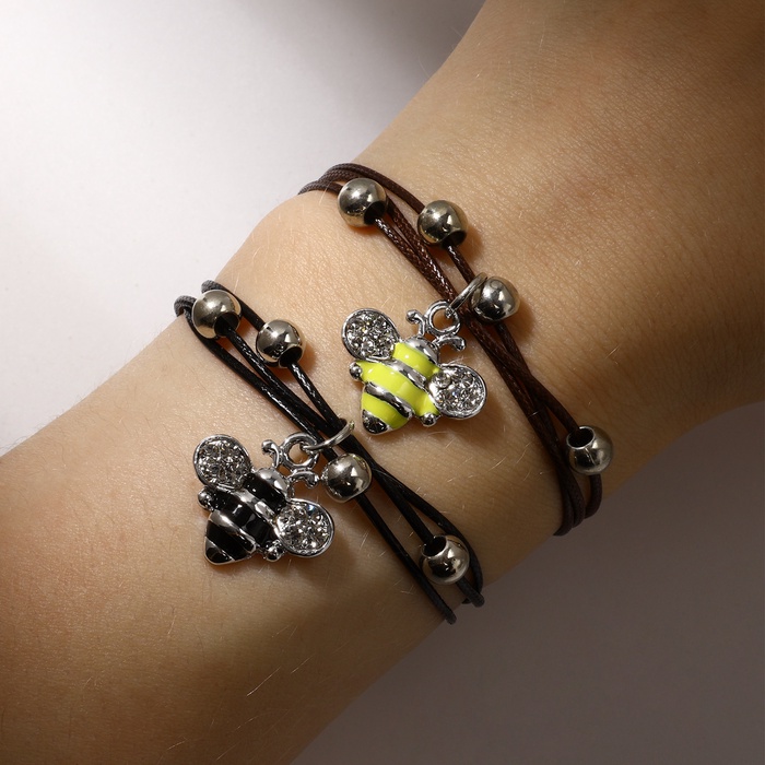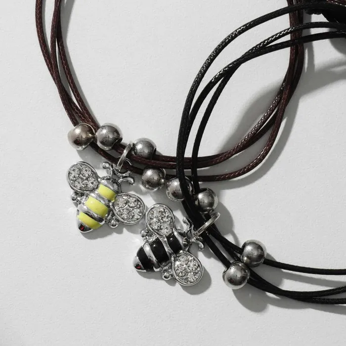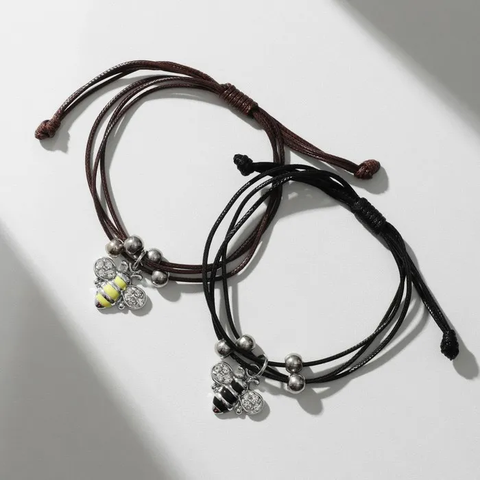 Браслеты парные «Неразлучники» пчёлки, чёрно-коричневые, L=12.5 см — Характеристики