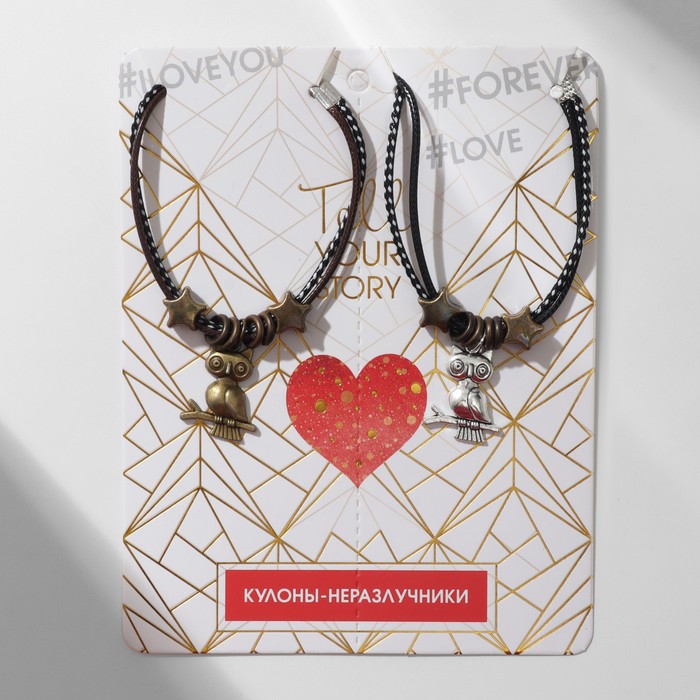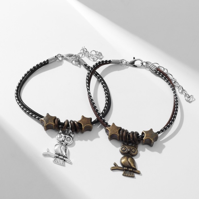 Браслеты парные «Неразлучники» совы на веточке, цвет чёрно-коричневый, L=19 см — Характеристики