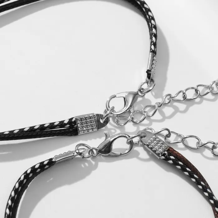 Выполненные из текстиля в насыщенных черно-коричневых тонах, эти браслеты имеют длину 19 см, что делает их универсальными и подходящими для любого запястья. Каждое изделие оформлено стильной затяжкой, что обеспечивает удобную и надежную посадку.