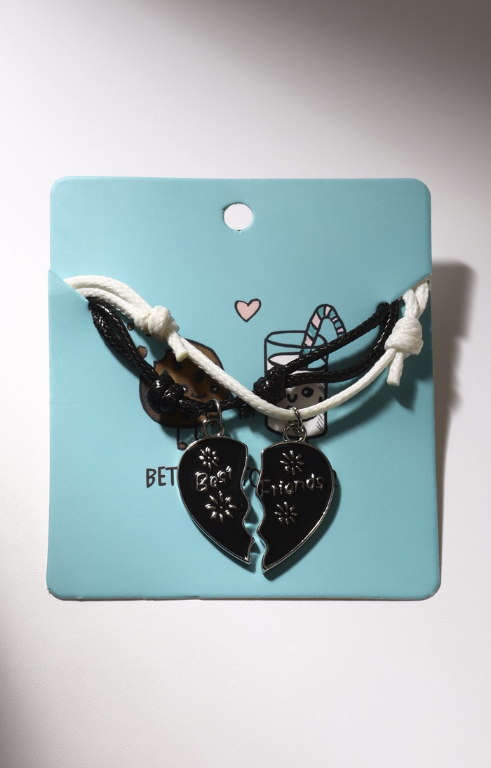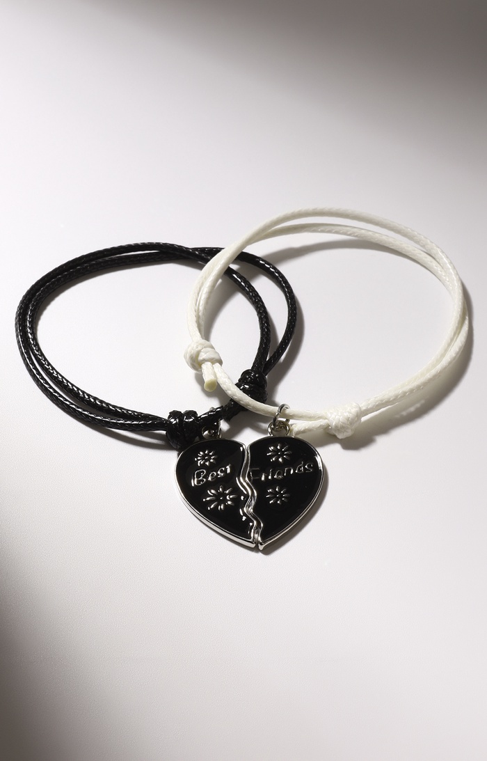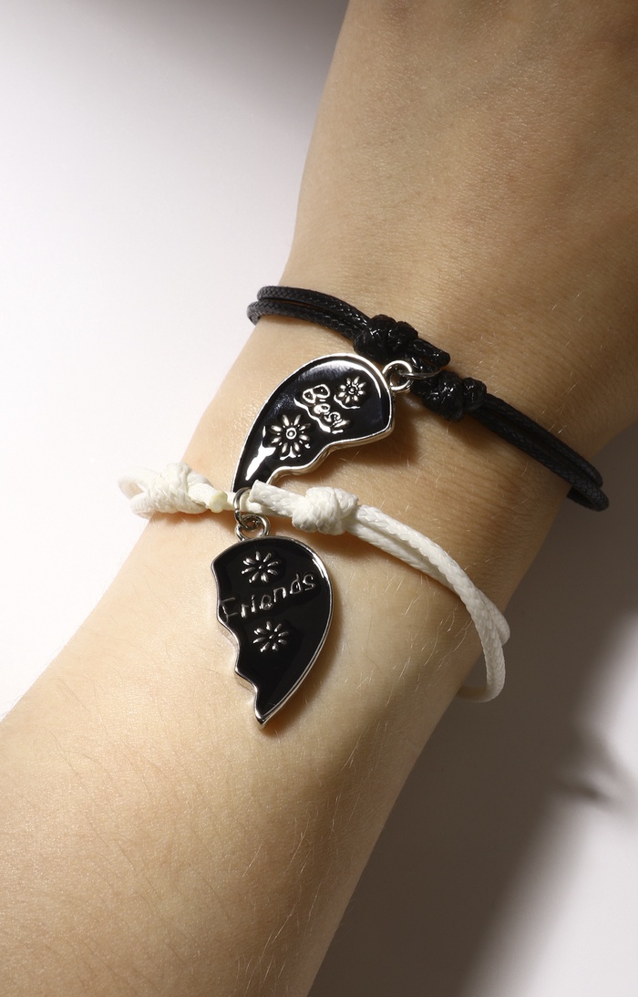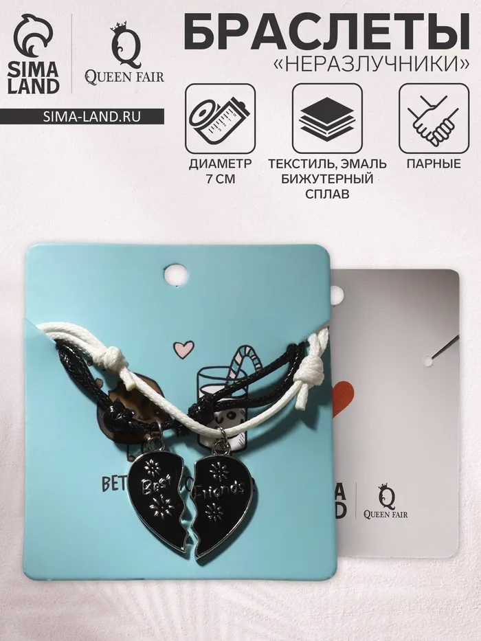 Браслеты парные «Неразлучники» цветок и сердце, чёрно-белые, d=7 см — Характеристики