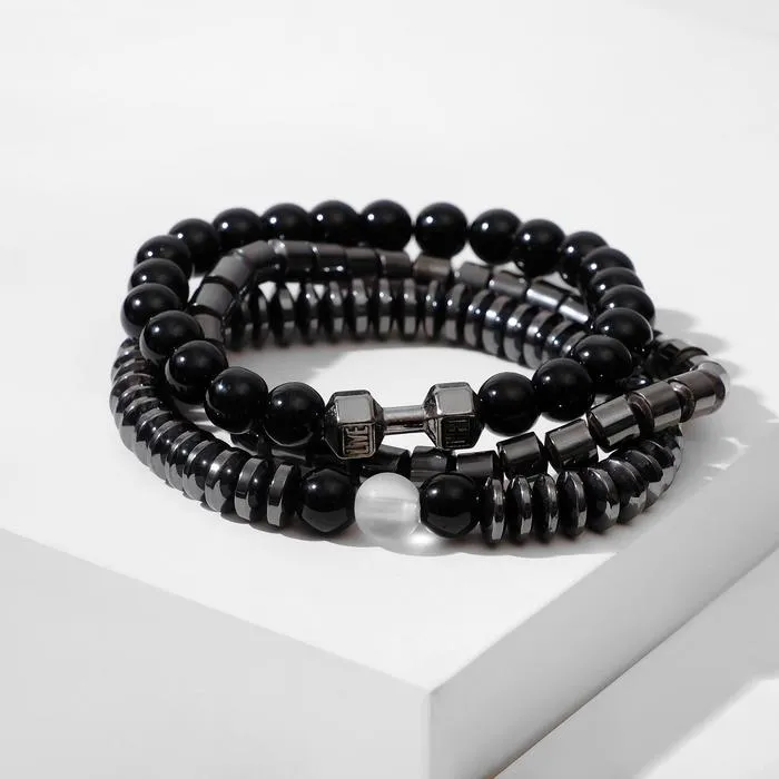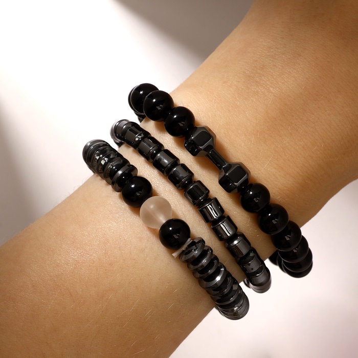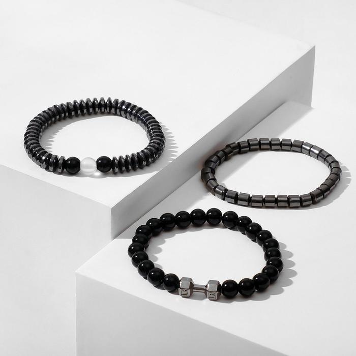 Браслеты унисекс «Гематит», 3 шт, гантели, d=7 см, чёрные — Характеристики