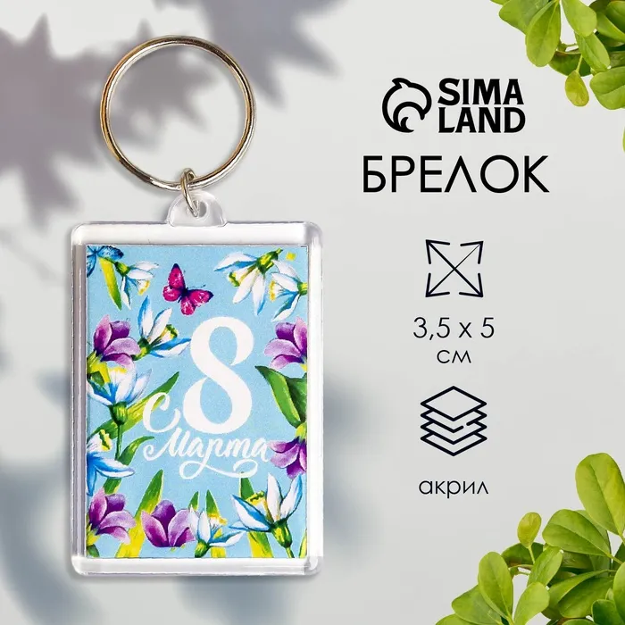 Брелок "8 Марта. Бабочка в цветах" пластик, 3,5х5 см — Характеристики