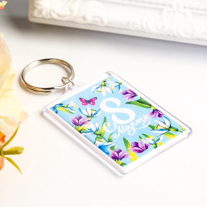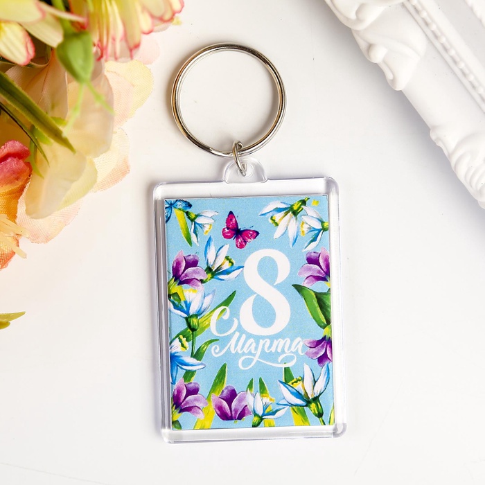 Брелок "8 Марта. Бабочка в цветах" пластик, 3,5х5 см