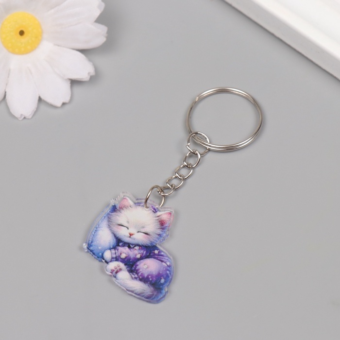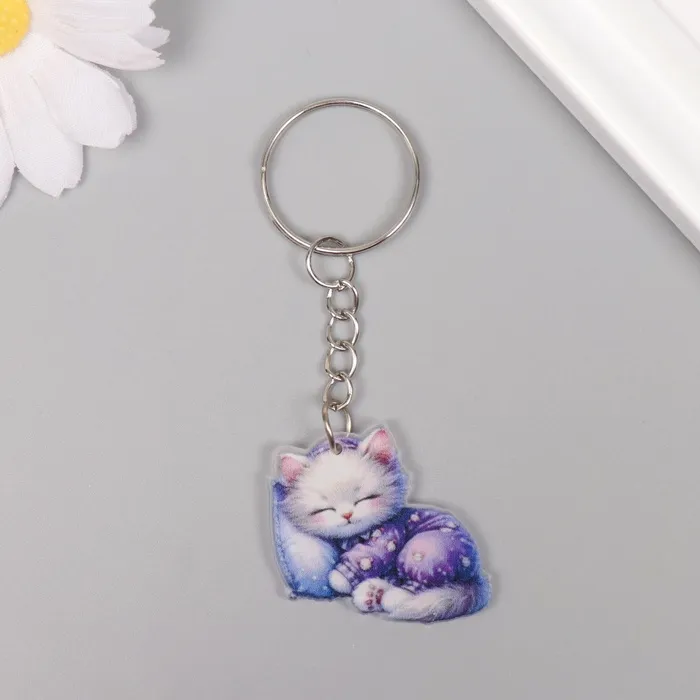 Брелок акрил "Котёнок в пижамке сладко спит на подушке" 2,9х3,4х0,3 см — Характеристики