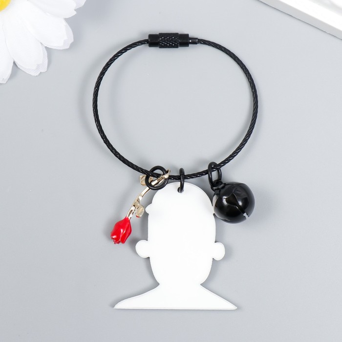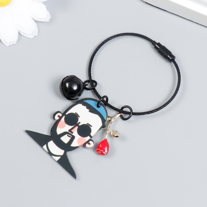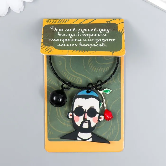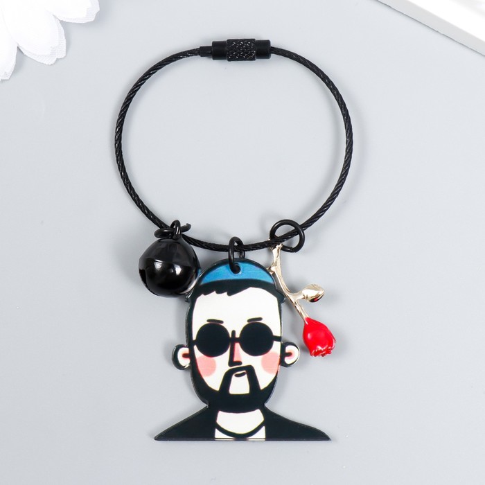 Брелок акрил на тросе с колокольчиком "Бородатый парень в очках и с розой" — Характеристики