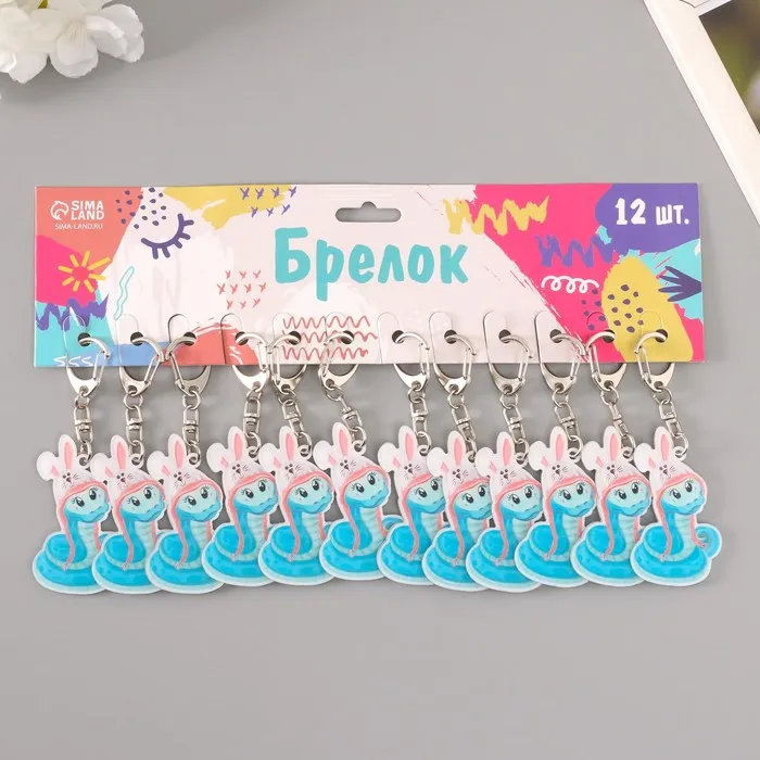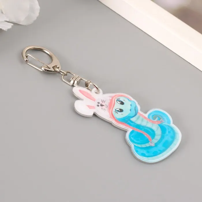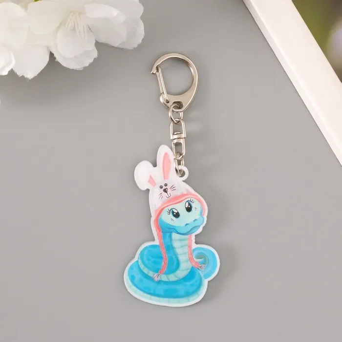 Брелок акрил "Змеёныш в вязаной шапке зайчика" 6х3,6 см — Характеристики