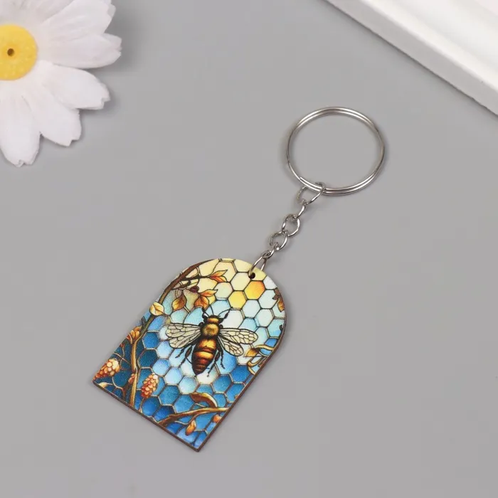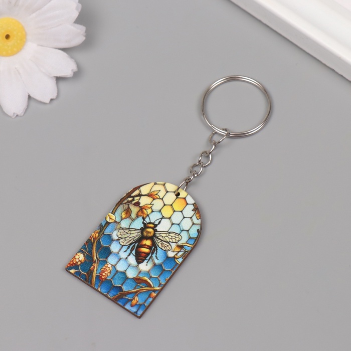 Брелок дерево "Пчела и соты. Витраж" 4,4х3х0,3 см