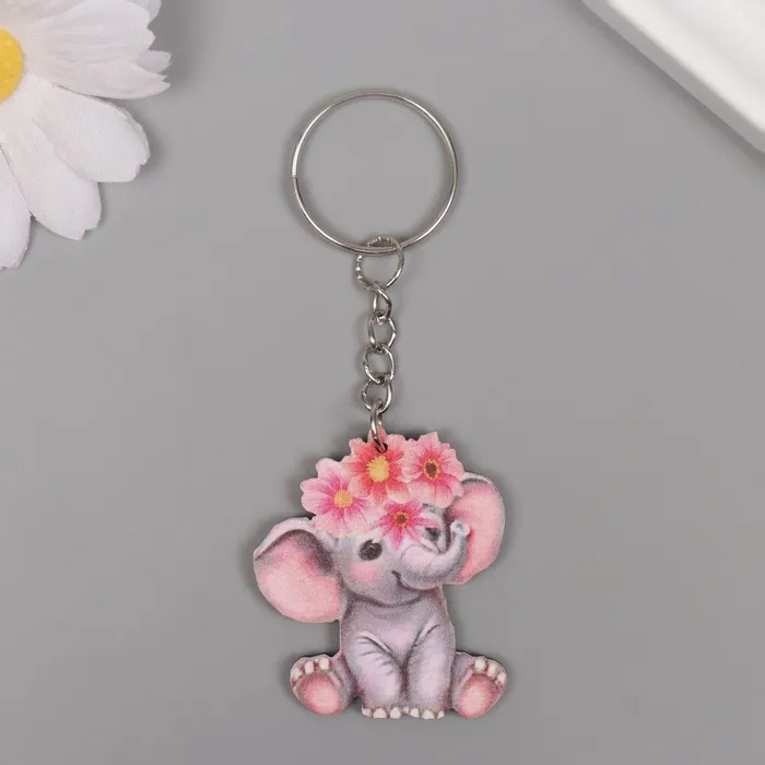 Брелок дерево "Слонёнок с цветным венком" 4,1х3,5х0,3 см