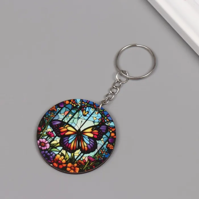Брелок дерево "Цветочная бабочка. Витраж" 4,6х4,6х0,3 см