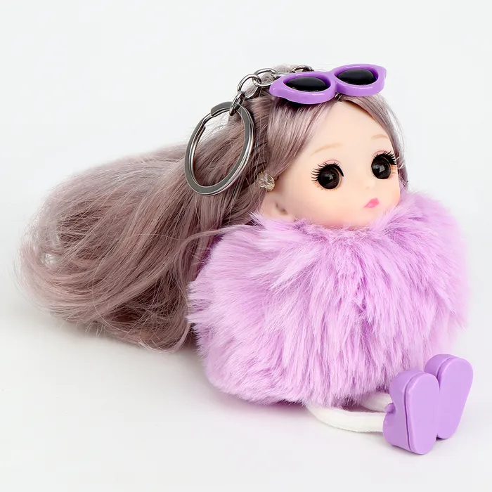 Брелок детский «Куколка модница», мягкая игрушка, 16 см, цвет фиолетовый