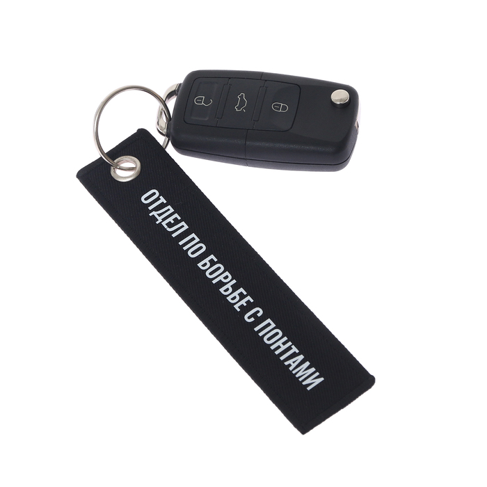 Брелок для автомобильного ключа Отдел по борьбе с понтами в виде ремешка-ремувки - это стильный и функциональный аксессуар для вашего автомобиля. Он выполнен в виде ленты с логотипом “Отдел по борьбе с понтами” и позволяет быстро и легко прикрепить брелок к ключам, сумке или рюкзаку.