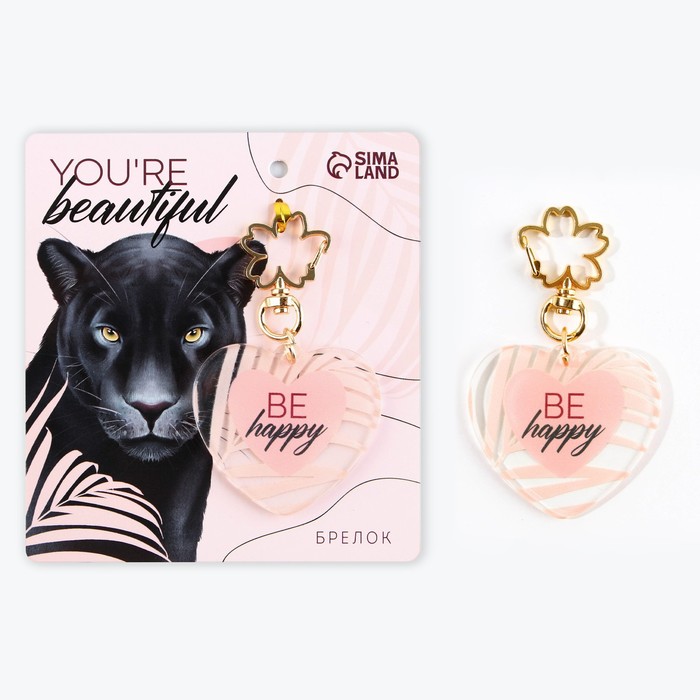 Брелок для ключей акриловый Be happy, 5×4.6 см