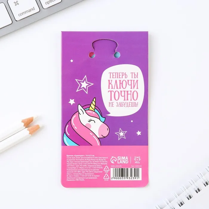 Брелок для ключей акриловый «Единорог», 7×12.5 см — Характеристики