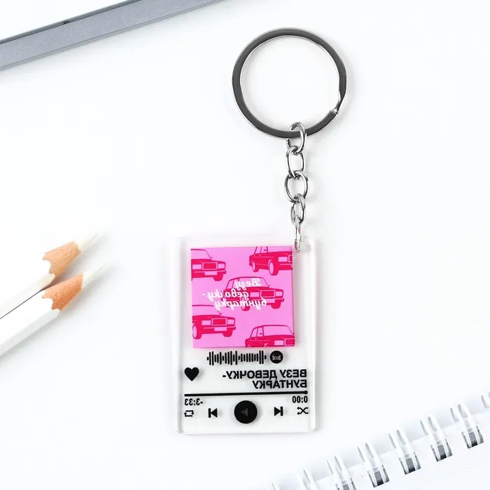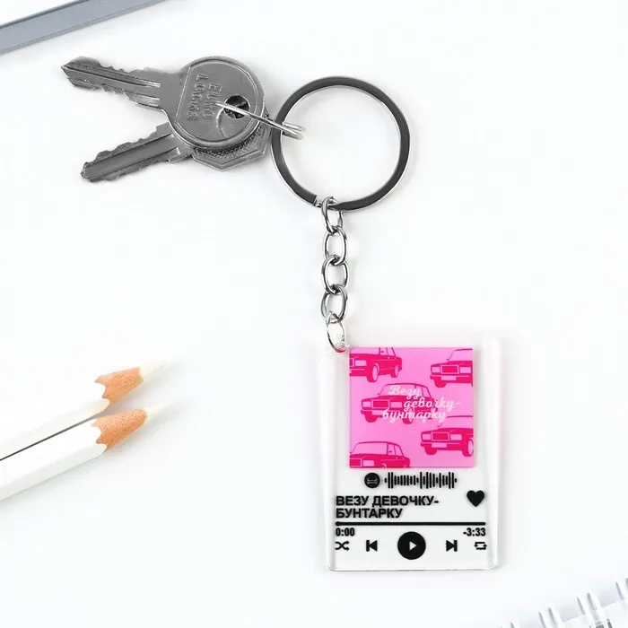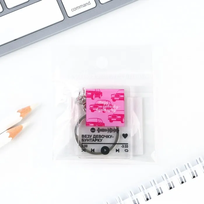 Брелок устойчив к царапинам, крепится за счет металлического кольца.