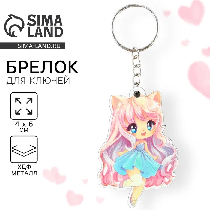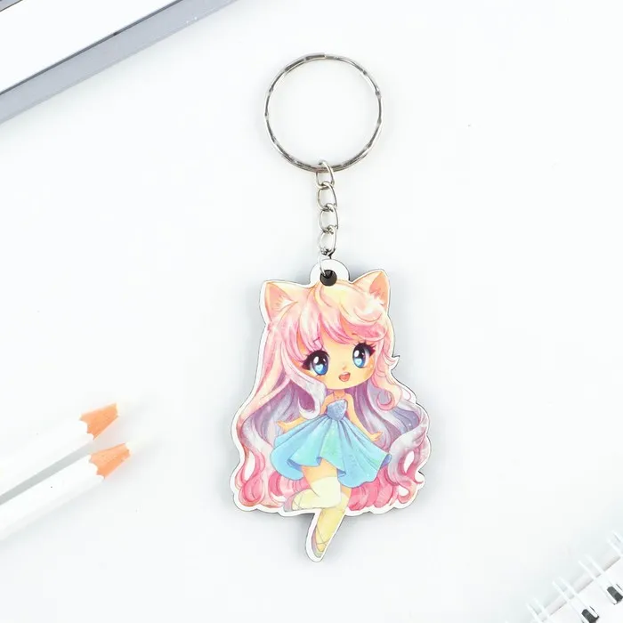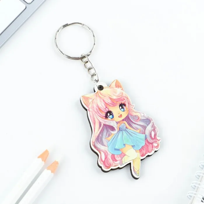 Брелок для ключей деревянный аниме «Девочка-котенок», 4×6 см — Характеристики