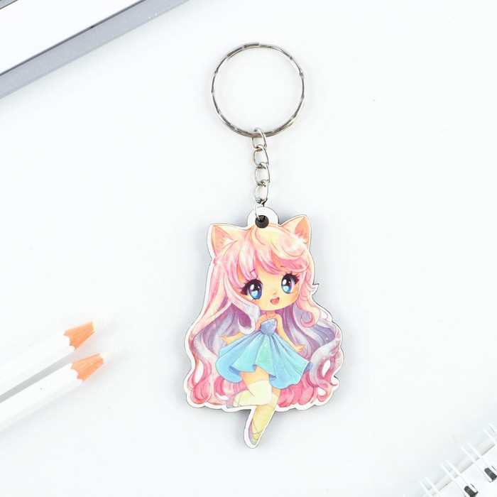 Брелок для ключей деревянный аниме «Девочка-котенок», 4×6 см