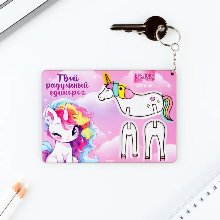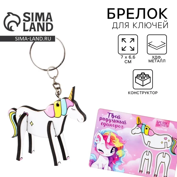 Брелок для ключей деревянный конструктор «Единорог», 7 х 6.6 см — Характеристики