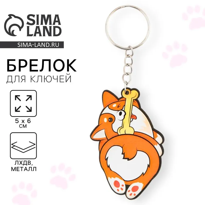 Брелок для ключей деревянный «Корги», 5 х 6 см — Характеристики