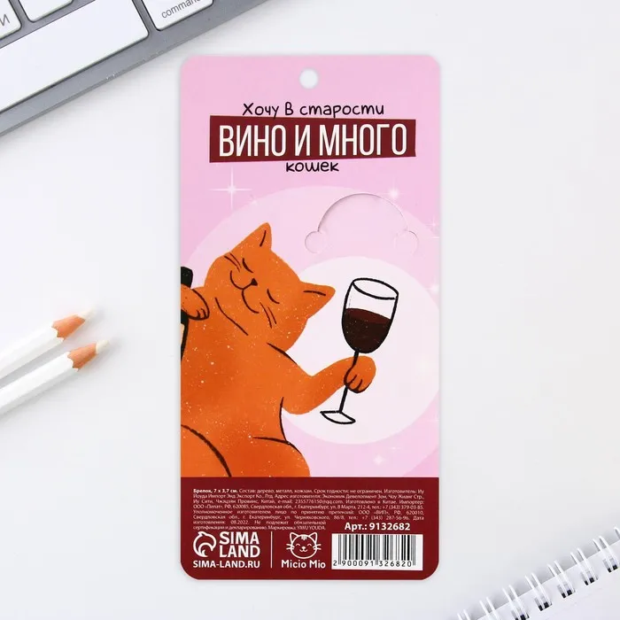 Брелок для ключей деревянный «Котик», 7 х 3,6 см — Характеристики