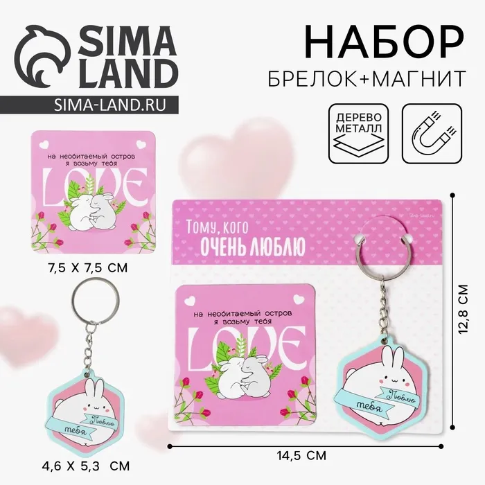 Брелок для ключей и магнит «Люблю тебя», подарочный набор, 14,5 х 12,8 см — Характеристики