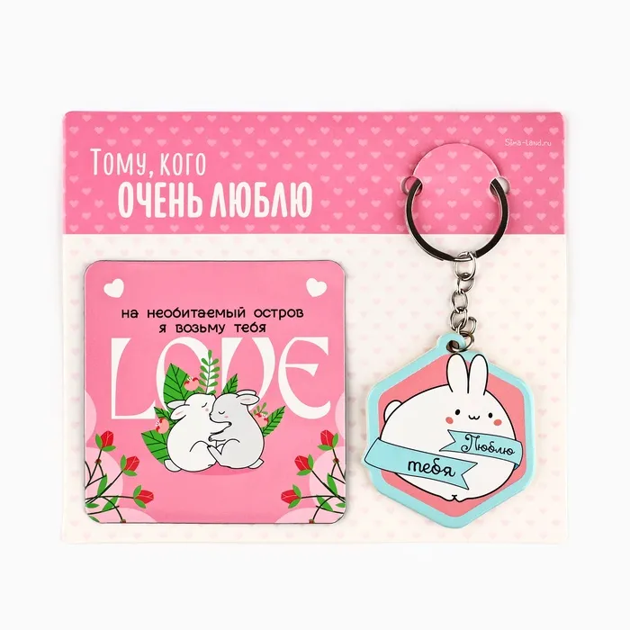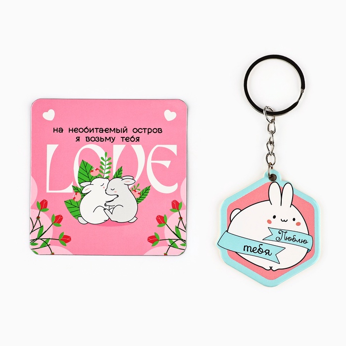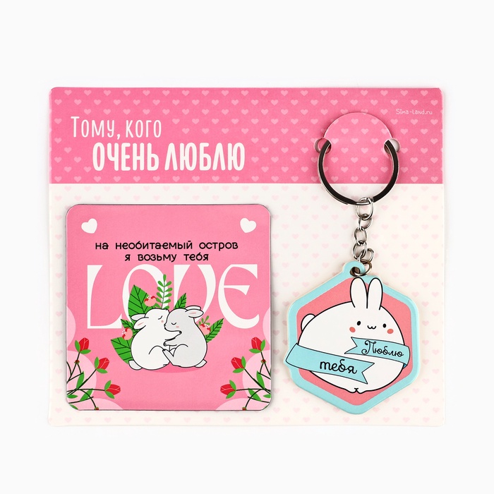 Брелок для ключей и магнит «Люблю тебя», подарочный набор, 14,5 х 12,8 см