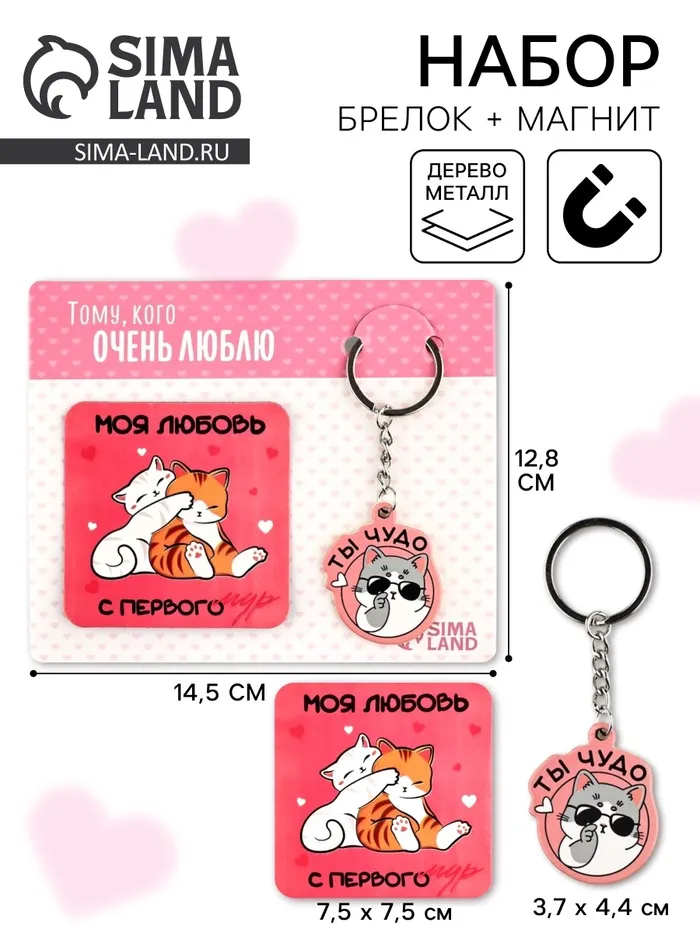 Брелок для ключей и магнит «Любовь с первого мур», 14.5×12 см — Характеристики