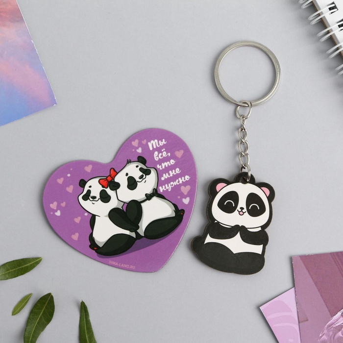Брелок для ключей и магнит «Панды», подарочный набор, 14.5×12 см