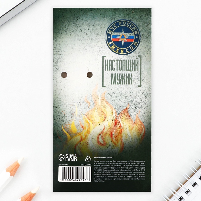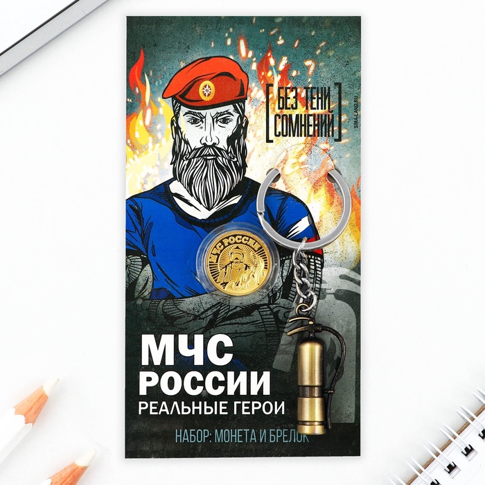 Брелок для ключей и монета «МЧС России», 8×14 см — Характеристики