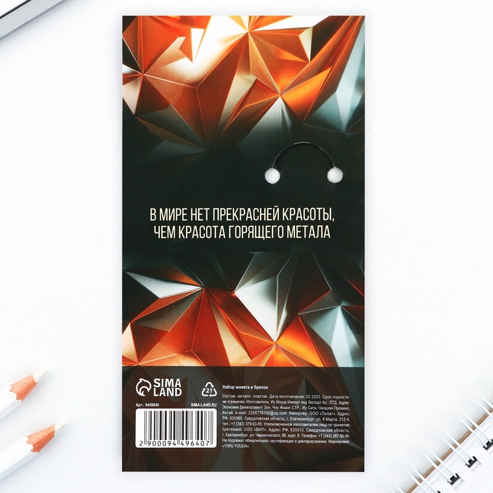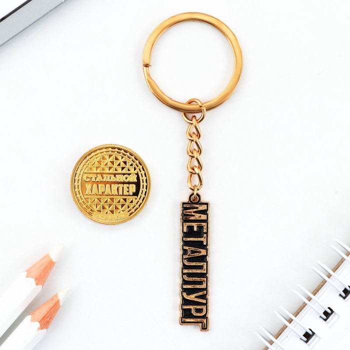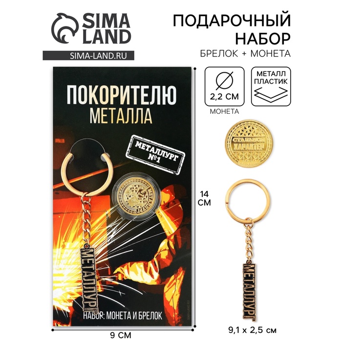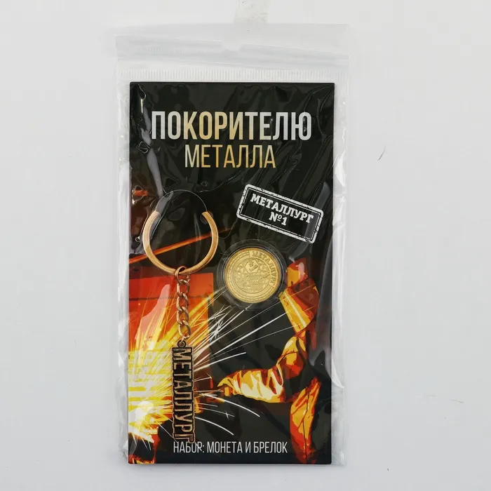 Брелок для ключей и монета «Покорителю металла», 8×14 см — Характеристики