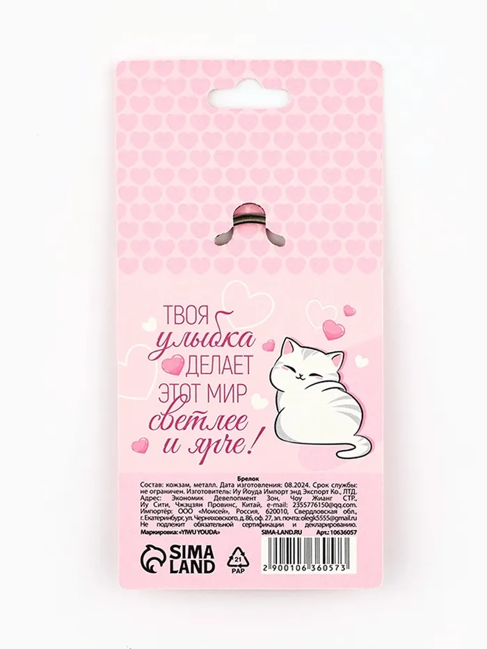 Брелок для ключей кожзам женский «Улыбнись», 6,1 х 9 см — Характеристики