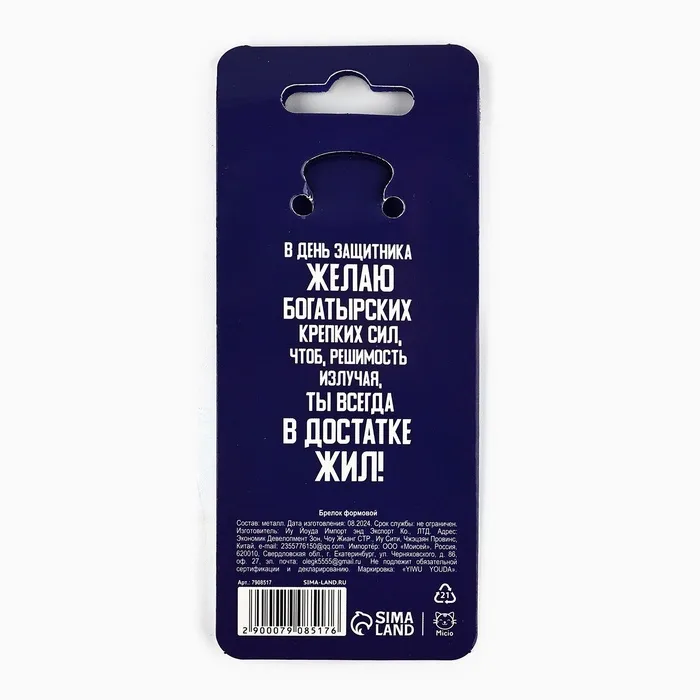 Брелок для ключей металлический «23 февраля», 10 х 4 см — Характеристики